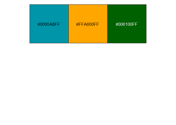 scales::show_col(c(teal, orange, multiply(teal, orange)), ncol = 3)