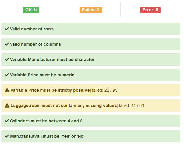 Define some validation rules with package validate and check whether data lives up to those expectations.